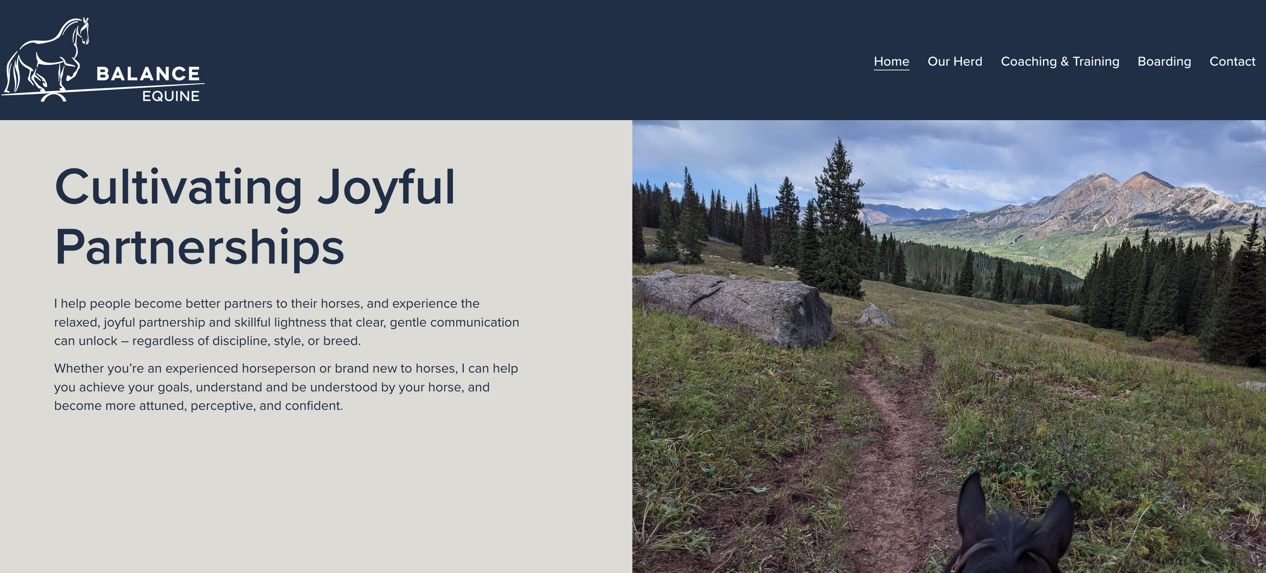 As the founder of Balance Equine, we needed a website to showcase our equestrian mindfulness and boarding program. Squarespace provided a seamless solution to list our services and made contact and scheduling very easy for prospective clients. Paired with a social media ad spend and local marketing, the site performs very well.